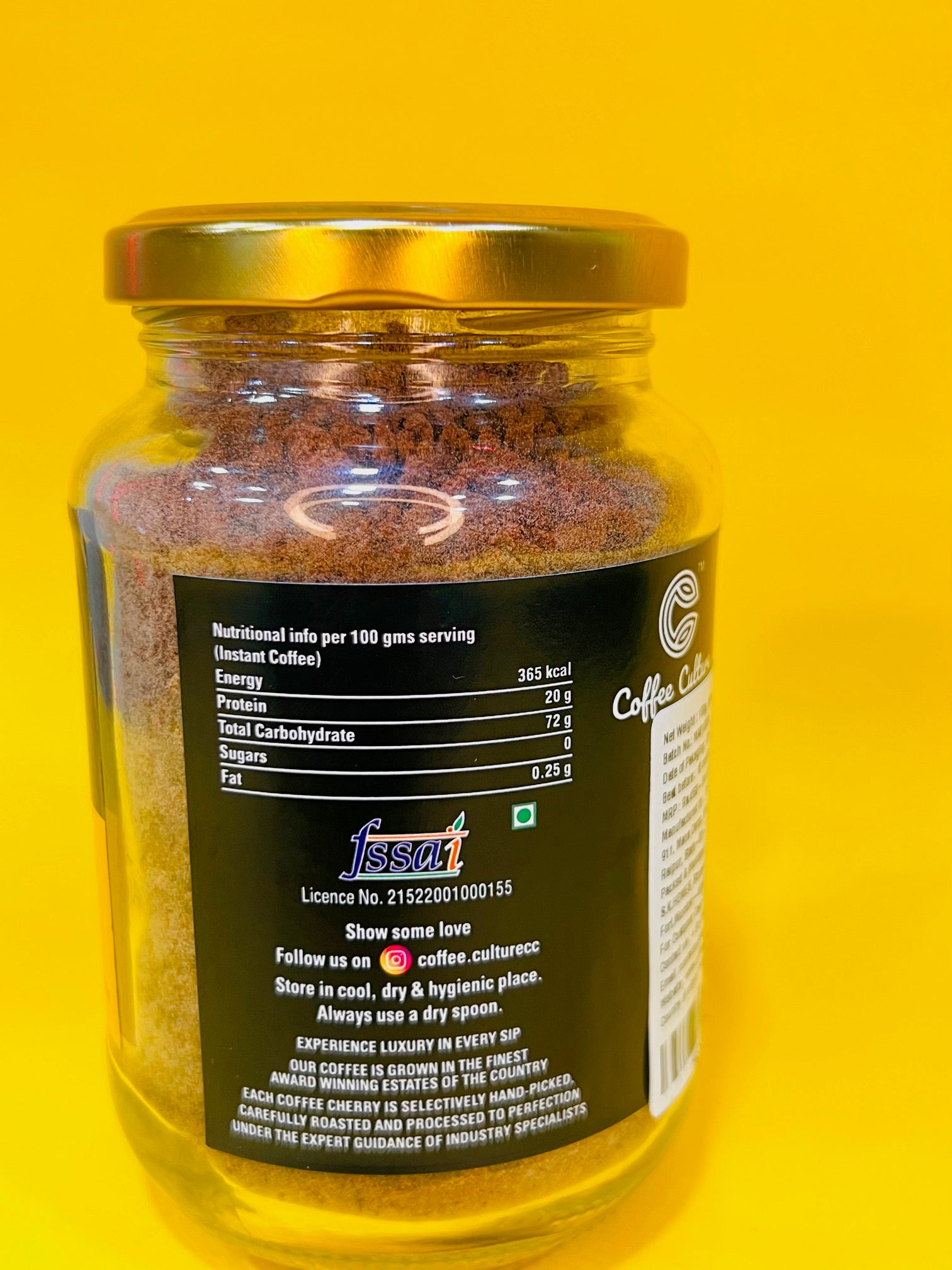 Number of Servings: 50 cups approx for 100g Ingredients: Pure Agglomerated Instant Coffee, Natural Identical Flavours Nutrient Content: Approx. Value per 100 g Energy (Kcal): 358.64 Carbohydrates: 69.11 g Protein: 19.92 g Fat: 0.28 g Caffeine content: Minimum 2.80% Flavoured coffee features: The finest 100% Arabica coffee beans powder for maximum taste Only completely safe nature-identical flavour. No chicory, no added sugar, no artificial additives